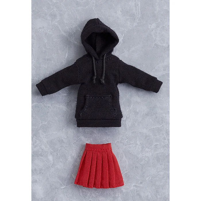 Make your favorite figma or 1/12 scale figures look comfy with this real cloth outfit set that includes a black drawstring hoodie with kangaroo pocket and red pleated skirt. It’s almost like giving your figma an alter ego or dressing them up like a disguised superhero. The hoodie looks extra cute when the hood is pulled up over their head and you put their hand in the pocket! A must-have for figure photographers!